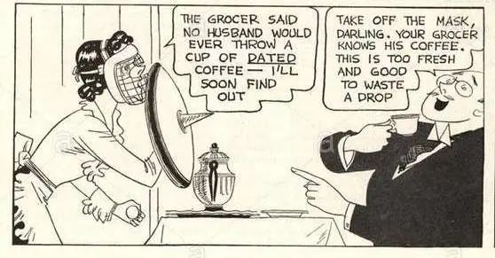 節(jié)目對推動(dòng)銷量顯然是有作用的——調(diào)查顯示,購買蔡司和桑伯恩咖啡的消費(fèi)者中,有80%都是節(jié)目聽眾,或者換句話說,節(jié)目聽眾購買蔡斯和桑伯恩咖啡的可能性要遠(yuǎn)遠(yuǎn)高于不收聽這個(gè)節(jié)目的人。盡管廣播行業(yè)飛速發(fā)展,咖啡品牌并沒有放棄報(bào)紙這一傳統(tǒng)陣地。不少廣告努力地告訴人們,只要家庭主婦用咖啡安撫討好丈夫,家庭就能獲得安寧快樂,比如蔡司和桑伯恩咖啡發(fā)布的一組連環(huán)畫。漫畫的上半部分描繪了一個(gè)雞飛狗跳的場景。早餐時(shí)間,丈夫愁眉不展地坐在桌旁,一會(huì)兒就要出門上班。妻子走過來,遞過一杯咖啡:“親愛的,你的咖啡!”丈夫聞了一下,咆哮起來:“這是什么破咖啡,像一堆泥塊兒一樣!”他把熱咖啡潑向妻子,大喊道:“你這次又給咖啡里加什么了?磚塊還是火藥啊?看看這都是什么破玩意兒!”妻子哭著說:“啊,你這個(gè)禽獸,對我這么兇,我已經(jīng)被你打得青一塊紫一塊了?!?img data-ratio="0.572619" src="http://puruisaisi.cn/file/upload/202206/28/115508711.png" data-type="png" data-w="840" style="vertical-align: middle;width: 100%;box-sizing: border-box;" />在下半部分,妻子戴著棒球接球手的面具,端著保護(hù)盾,給丈夫送上一杯蔡斯和桑伯恩咖啡,緊張地喃喃自語:“商店里的人說,丈夫一定不會(huì)亂扔保質(zhì)期以內(nèi)的咖啡,很快我就知道是否果真如此了?!闭煞蚝攘艘豢冢矚g至極,溫柔地對妻子說:“親愛的,快把面具拿下來,這家商店的人懂咖啡,這咖啡很新鮮,而且滴滴香濃。”