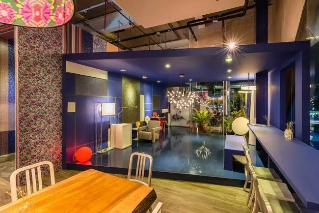 ——NO.2——曼谷·Pop-up咖啡廳通過(guò)具有民族風(fēng)情的泰式大型吊燈來(lái)突出地域感的氛圍,直接未經(jīng)修飾的空間頂部--反而不會(huì)讓人變得拘謹(jǐn)。墻體壁畫、墊子印花等,讓現(xiàn)代波普藝術(shù)與泰式文化審美相得益彰。
