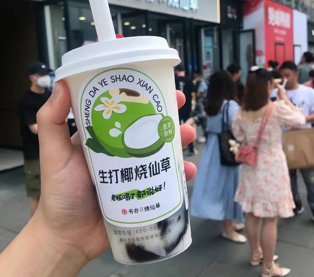而且最近一年,糯米小料的搭配組合方式也在更新迭代:去年4月,書亦燒仙草上新了3款厚乳系列,就用到了斑斕糯米。而伏小桃上新的嘉陵江綠系列中,也使用了糯米+斑斕的組合。