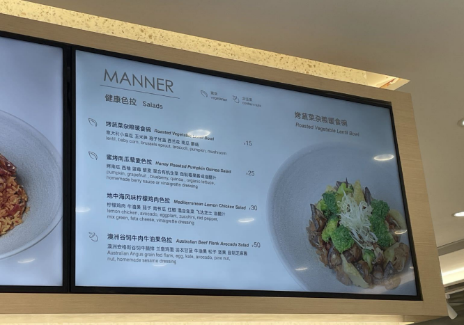 輕食店旁邊是打通的咖啡店(來源:明亮公司)菜品的價(jià)格主打高性價(jià)比,據(jù)店內(nèi)工作人員透露,客單價(jià)約30~40元,菜品有招牌川香風(fēng)味烤雞、新加坡叻沙湯粉、墨西哥牛肉芝士薄餅、香烤雞翅玉米泥、意大利肉醬貝殼面、自制xo醬海鮮炒飯等,不再是雞胸肉+糙米+菜葉的輕食,在西式料理中融入亞洲風(fēng)味,更符合國(guó)人的胃口。同時(shí)目前菜單上出現(xiàn)的菜品也是在長(zhǎng)期輕食餐飲中顧客選擇最多的一些SKU,一方面用這些成熟菜品能比較快的進(jìn)行店內(nèi)的菜單組合,另一方面也減少用戶的選擇時(shí)間,加快點(diǎn)單速度。Manner cafe主打的是中午餐食,對(duì)目標(biāo)客群而言,決策成本低、客單價(jià)足夠性價(jià)比以及口味又還可以,這些組合就足夠了,在菜品的豐富度和更新速度上,可以適當(dāng)調(diào)低預(yù)期。對(duì)一家剛進(jìn)入餐飲的咖啡品牌而言,直接拿爆品菜單,才是最具效率的組貨模式。