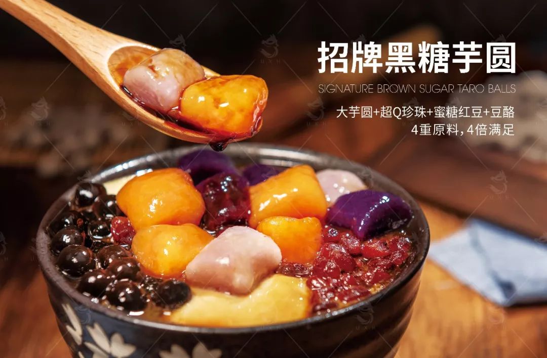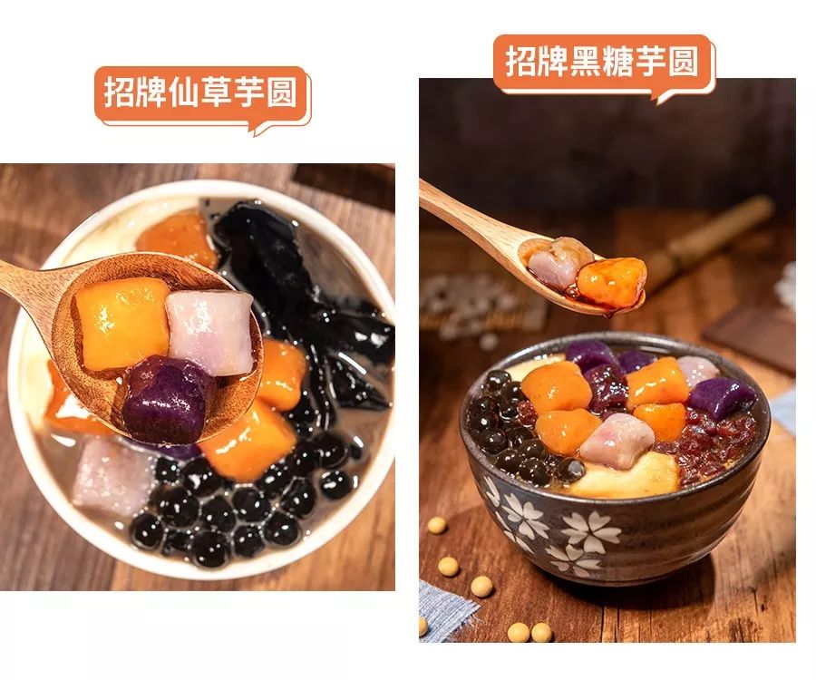 考慮到大家奶茶店備料和操作問(wèn)題,我們選擇了大芋圓、超Q珍珠 、豆酪、仙草凍、蜜糖紅豆這些日常原料來(lái)組合搭配,料更足,更有價(jià)值感。相仿的原料、相同的器具設(shè)備、相似的門(mén)店出品要求。對(duì)茶飲店而言,要增加幾款引流甜品,達(dá)到甜品店出品標(biāo)準(zhǔn),沒(méi)有太大難度,而且冷熱皆宜,簡(jiǎn)單3步即可出品。