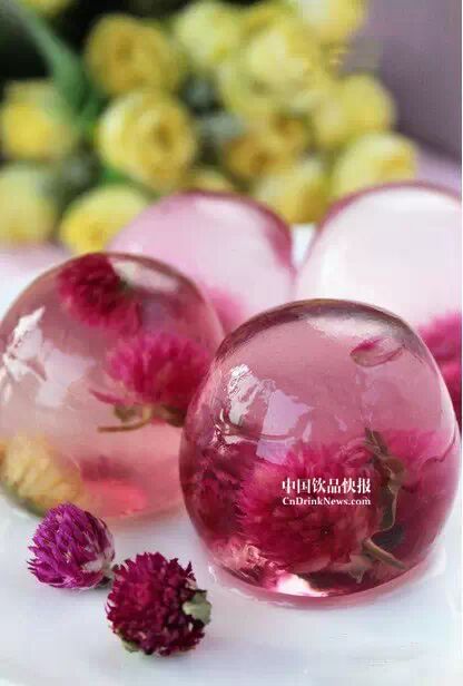 3.把花朵冰塊加在冷飲中,隨著冰塊的漸漸融化,飲料混合了淡淡的花香變得更加清涼解暑,清香宜人。