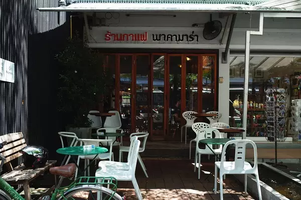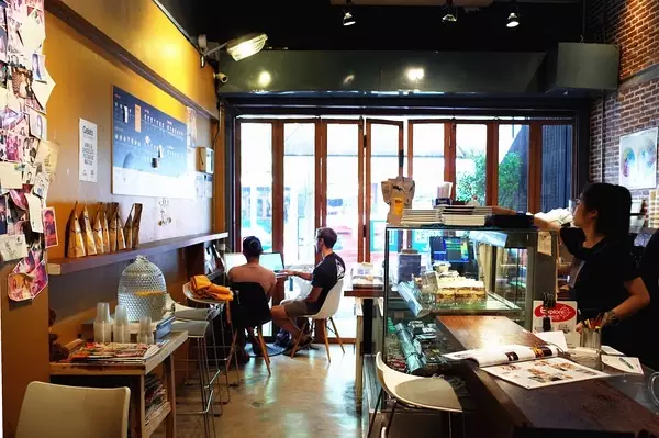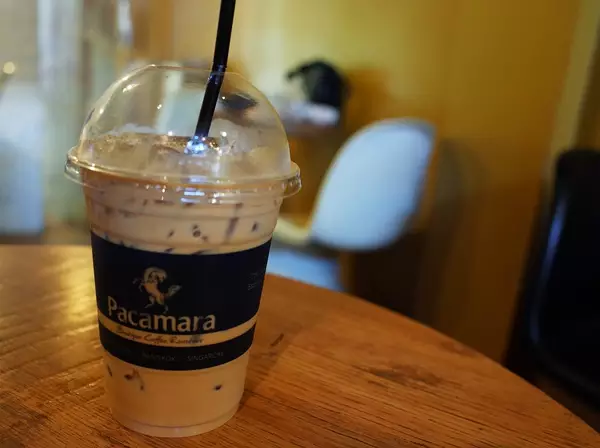 離Akha Ama Coffee不遠(yuǎn)的同一條街上,還有家類似的咖啡店叫Pacamara Coffee,是曼谷開過來的分店,也是一個(gè)窄窄的門面,鑲著木框的透明玻璃窄門,直接在磚墻外邊刷白一層,最里面有張舒服的看報(bào)桌,又是兩位看不出性別的小哥(或妹子?)在那里喝東西玩手機(jī),泰國的年輕人你們這樣讓人很怕搭錯(cuò)訕啊。
