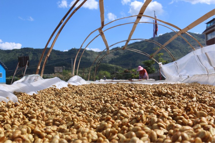 把果皮、果肉去除后,會有層粘稠的膠狀物裹在咖啡內(nèi)果皮上,它的糖度極高,通常稱之為“蜜”。帶著這層蜜,濕答答的咖啡豆放在網(wǎng)架上晾干,不斷翻動避免污染和霉害,加速干燥,這樣的過程就是咖啡的蜜處理。蜜處理分三個級別:黃蜜、紅蜜、黑蜜。這種顏色的變化源于光照的長短。光照越短,干燥時間越長,處理過程越復雜,因此從黃、紅到黑,咖啡豆價格依次增加。蜜處理的咖啡因為沒有經(jīng)歷發(fā)酵,因此酸度較低,能呈現(xiàn)咖啡熟果甘甜的原始風味與漿果的香氣,還帶有紅酒的基調(diào)。好了,要不要來杯蜜處理實際體會一下?