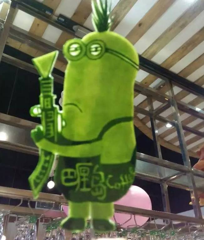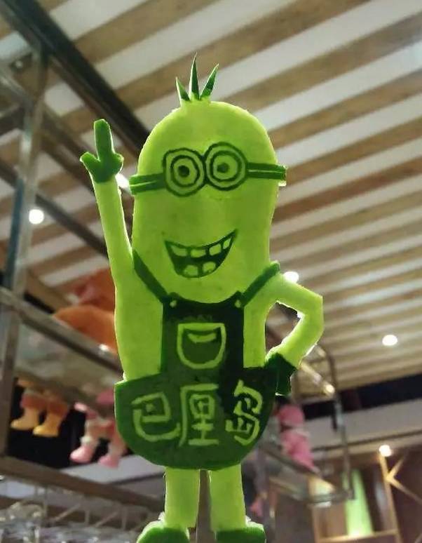 小黃人大眼萌席卷餐飲行業(yè),純手工雕花萌出新高度