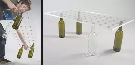 這款其實(shí)是一種咖啡桌,卻是用酒瓶來循環(huán)利用來做桌子腿。