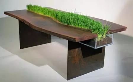 這款獨(dú)特的桌子上面有個(gè)可以移動的種很多植物的培養(yǎng)皿。