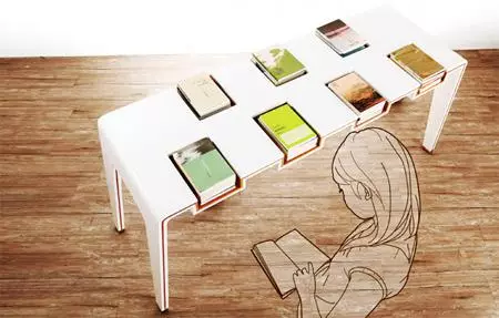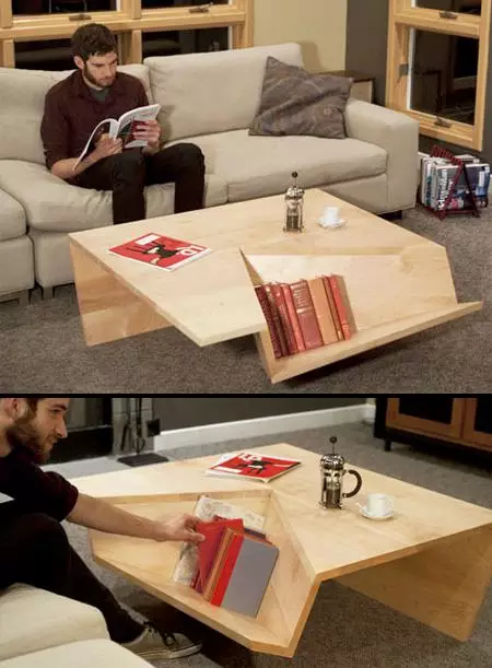DavidPickett設(shè)計(jì)這種咖啡桌中的一個(gè)凹坑成為一個(gè)與桌子一體書架。