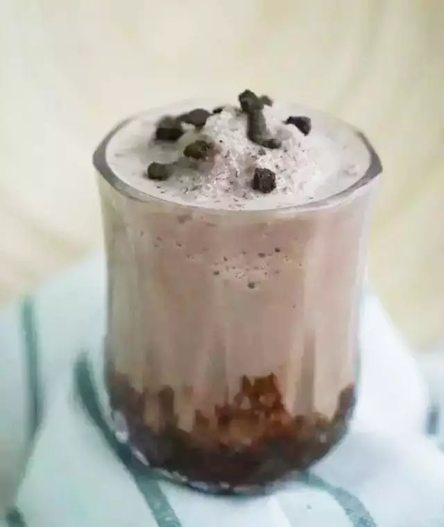 制作方法:1、在冰沙機(jī)中加入冰塊、晶花巧克力飲料粉、晶花原味奶昔粉、純凈水、果糖和薄荷糖漿;2、使用冰沙機(jī)攪打均勻后,裝杯加入稀奶油即可。