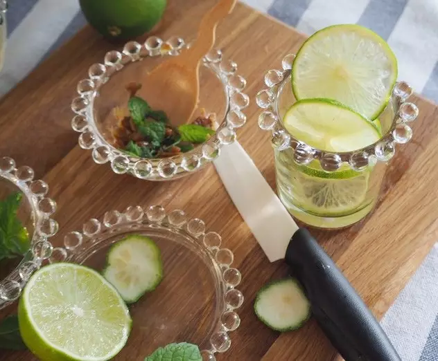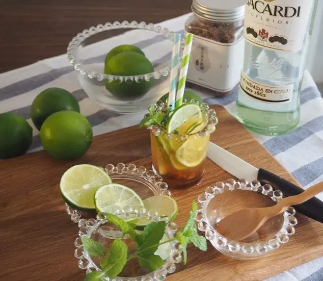 莫吉托(Mojito):最有名的朗姆調(diào)酒之一。起源于古巴。傳統(tǒng)上,莫吉托是一種由五種材料制成的雞尾酒:淡朗姆酒、糖(傳統(tǒng)上是用甘蔗汁)、萊姆(青檸)汁、蘇打水和薄荷。最原始的古巴配方是使用留蘭香或古巴島上常見的檸檬薄荷。萊姆(青檸)與薄荷的清爽口味是為了與朗姆酒的烈性相互補(bǔ),同時也使得這種透明無色的調(diào)酒成為夏日的熱門飲料之一。這種調(diào)酒有著相對低的酒精含量(大約10%)。紅糖版mojito喝起來味道更濃郁,更適合女孩子。材料:青檸檬1個、薄荷葉若干、紅糖適量、朗姆酒30-50ml、蘇打水或雪碧一罐。做法:1青檸檬一個洗凈擦干表面無水放置一旁備用