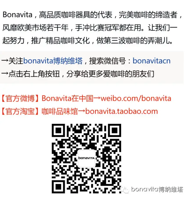 版權(quán)信息:以上文章轉(zhuǎn)自bonavita公眾號(hào)【bonavitacn】侵權(quán)請(qǐng)聯(lián)系: weixin@coffeesalon.com投稿合作:tips@coffeesalon.com
