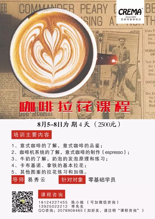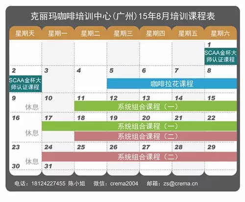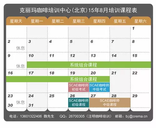 克麗瑪咖啡培訓(xùn)中心8月課程表【北京】