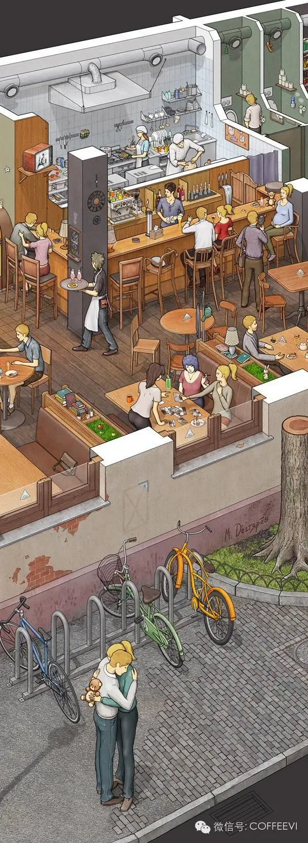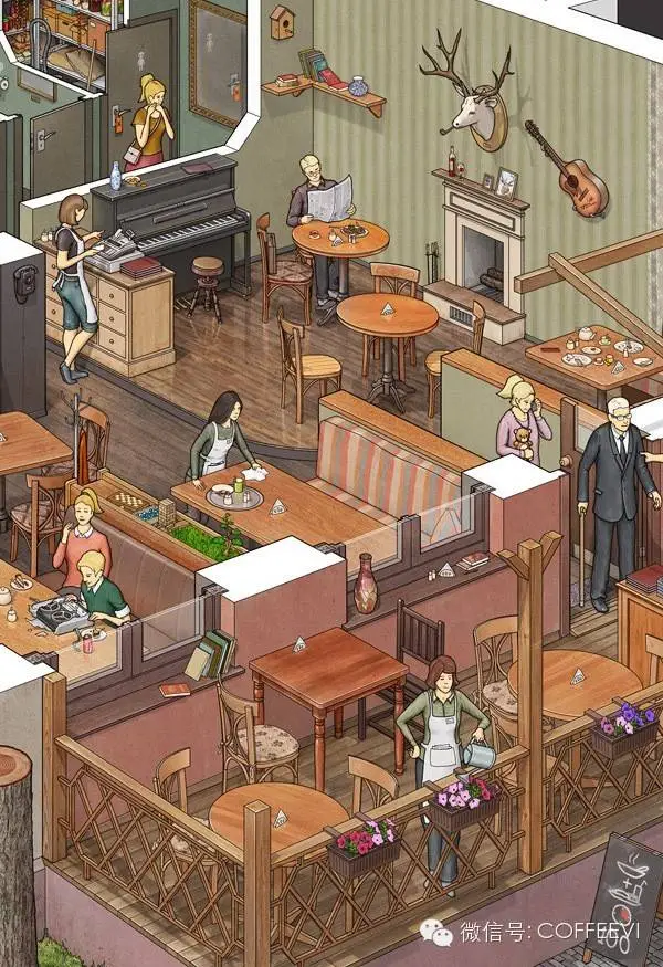 畫(huà)家自然很屌因?yàn)橄袼禺?huà)中的每個(gè)人都在咖啡館中有自己的生活形式但我想說(shuō),你能從畫(huà)面中把想象力延展多寬我說(shuō)說(shuō)我的想法吧若當(dāng)下,你把咖啡館歸為餐飲業(yè),你是保守的若說(shuō)咖啡館以后會(huì)是一個(gè)平臺(tái),你的咖啡館則會(huì)有將來(lái)……不懂,問(wèn)我,5000人民幣一個(gè)問(wèn)題(假幣報(bào)警)