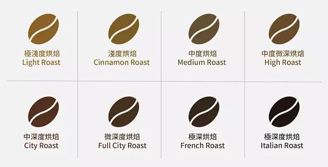 極淺度烘焙/ Light Roast又稱「淺烘焙」下豆時(shí)間:一爆開(kāi)始前后風(fēng)味:豆表呈淡肉桂色,具有濃厚的青草味,口感與香氣不足,一般用于試驗(yàn),很少做品嘗用。淺度烘焙/ Cinnamon Roast又稱「肉桂烘焙」下豆時(shí)間:一爆開(kāi)始至密集風(fēng)味:豆表呈肉桂色,此時(shí)的青草味已除,酸質(zhì)強(qiáng)烈、略帶香氣,常用來(lái)沖泡美式咖啡。中度烘焙/ Medium Roast又稱「微中烘焙」下豆時(shí)間:一爆密集至結(jié)束間風(fēng)味:豆表呈栗子色,口感清淡、偏酸帶苦、香氣適中,保留咖啡豆原始風(fēng)味,常做美式咖啡或混合咖啡之用。中度微深烘焙/ High Roast又稱「濃度烘焙」下豆時(shí)間:第一次爆裂結(jié)束風(fēng)味:豆表呈淺紅褐色,口感清爽豐富、酸苦均衡不刺激,且略帶甜味,香氣風(fēng)味均佳,藍(lán)山、吉利馬札羅咖啡均適合此烘焙程度。中深度烘焙/ City Roast又稱「城市烘焙」下豆時(shí)間:第一次爆裂后,即一、二爆中間風(fēng)味:豆表呈淺棕色,口感明亮活潑、酸苦平衡間酸質(zhì)又偏淡,且釋放咖啡中優(yōu)質(zhì)的風(fēng)味,為標(biāo)準(zhǔn)的烘焙程度,也是大眾最喜愛(ài)的烘焙程度。微深度烘焙/ Full City Roast又稱「深城市烘焙」下豆時(shí)間:第二次爆裂風(fēng)味:豆表呈褐色,口感沉穩(wěn)飽滿、苦味較酸味強(qiáng)勁、余韻回甘,香氣飽滿,為中南美式烘焙法,多做冰咖啡、黑咖啡使用。極深烘焙/ French Roast又稱「法式烘焙」下豆時(shí)間:二爆密集到二爆結(jié)束風(fēng)味:豆表呈深褐色帶黑,口感強(qiáng)勁濃烈、苦味較濃、酸味清淡近乎無(wú)感覺(jué)、帶有濃郁的巧克力與煙熏香氣,法國(guó)最為盛行,多做咖啡歐蕾、維也納咖啡。極深度烘焙/ Italian Roast又稱「意式烘焙」下豆時(shí)間:二爆結(jié)束至豆表轉(zhuǎn)黑出油風(fēng)味:豆表呈黑色泛油光,咖啡豆纖維在碳化之前,口感強(qiáng)烈復(fù)雜、苦味強(qiáng)勁、帶有濃厚的煎焙與焦香,主要流行于意大利,多做意式咖啡Espresso使用。什么才是「好的烘焙」?如何烘出好豆?1.充分地預(yù)熱烘焙機(jī),確保溫度是一致性的,在生產(chǎn)開(kāi)始時(shí)進(jìn)行足夠的預(yù)熱循環(huán)是烘焙機(jī)操作中需要注意的關(guān)鍵點(diǎn)之一。2.整個(gè)烘焙過(guò)程豆子都是在吸熱動(dòng)作, 只有一爆&二爆是放熱動(dòng)作, 在這兩階段最好不要加大火烘焙, 否則豆子容易有辛辣感。3.烘焙豆下豆后必須馬上冷卻, 愈快速度愈好, 這樣可以把豆子的風(fēng)味鎖住, 避免流失。