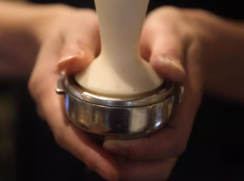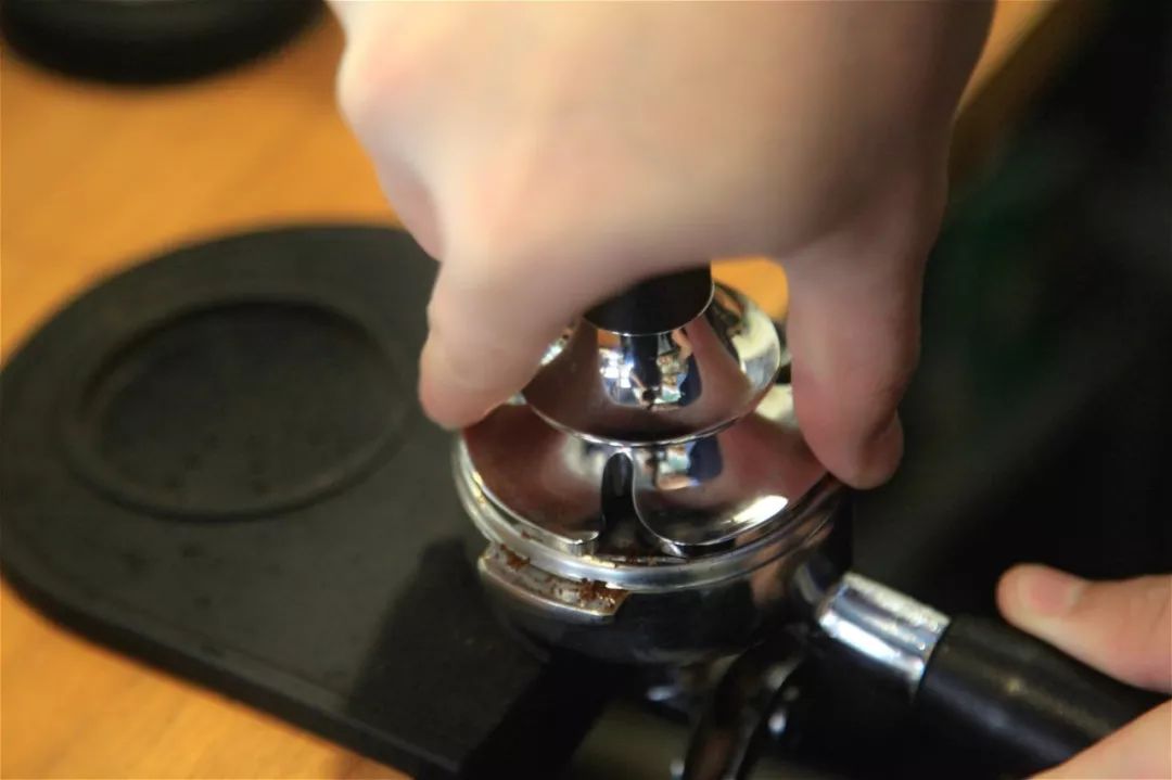 要想得到穩(wěn)定的出品,固定的粉量是必須的,否則你的咖啡就會一杯濃一杯淡,而且如果吧臺不止有一個咖啡師,那么固定的粉量即是你們出品一致性的第一要素。每臺咖啡機(jī)匹配的粉碗會有一個容量標(biāo)準(zhǔn),我們一般會按照這個標(biāo)準(zhǔn)去稱粉。無論是過多還是過少,都會萃取出一杯不正確的意式,尤其是使用過多的粉量,極細(xì)粉容易回吸到分水網(wǎng)里對機(jī)器造成不必要的損壞~如果是由于研磨過細(xì),磨豆機(jī)刀盤長期不清理,磨豆機(jī)刀盤磨損導(dǎo)致的大團(tuán)結(jié)塊,請根據(jù)實際情況逐個排查整改吧!當(dāng)然豆子的關(guān)系也會有,使用出油的深烘咖啡豆,粉團(tuán)問題就不可避免了。如果我們是第一次使用的磨豆機(jī)和咖啡機(jī),可以先磨一點出來觀察:把研磨度調(diào)細(xì),然后一邊磨一邊調(diào)粗,會發(fā)現(xiàn)粉粒從大粉團(tuán)到小粉團(tuán)再到幾乎沒有粉團(tuán)的狀態(tài)改變,那么一般而言出現(xiàn)一點小粉團(tuán)(靜電原因)就是比較合適的研磨度了。可以試著先做一杯雙份的濃縮,然后根據(jù)時間25±3秒,萃取量=粉量×2來作調(diào)整。最后記得試喝確認(rèn)風(fēng)味!檢查壓粉為什么跳過了布粉呢?因為布粉我們之前說的很多,而且布粉正確并不等于壓粉正確哦!這可是考驗手指功力的~下面說的僅針對普通粉錘而言。