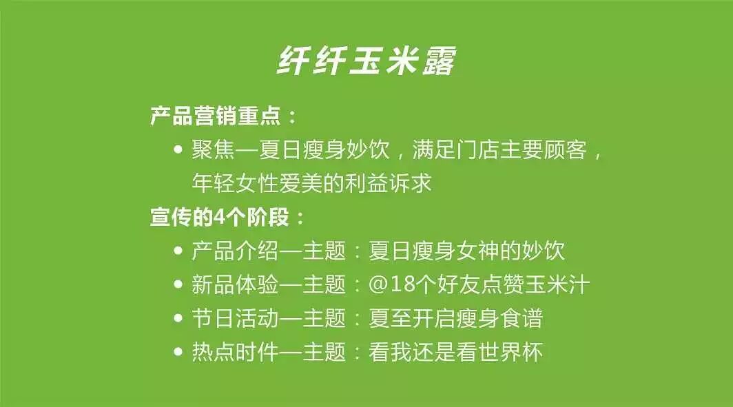 抓住美的表現(xiàn)性,可以從身材苗條、膚色白皙、臉色紅潤(rùn)、頭發(fā)烏黑出發(fā)。從玉米本身來(lái)講,它富含粗纖維,是潤(rùn)腸飽腹,營(yíng)養(yǎng)代餐的最佳瘦身食材,所以纖纖玉米露抓住了瘦身、苗條的利益點(diǎn),進(jìn)行產(chǎn)品訴求,相信消費(fèi)者會(huì)為此買單。