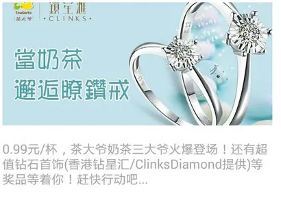 茶大爺:9毛9買奶茶,還要送鉆戒