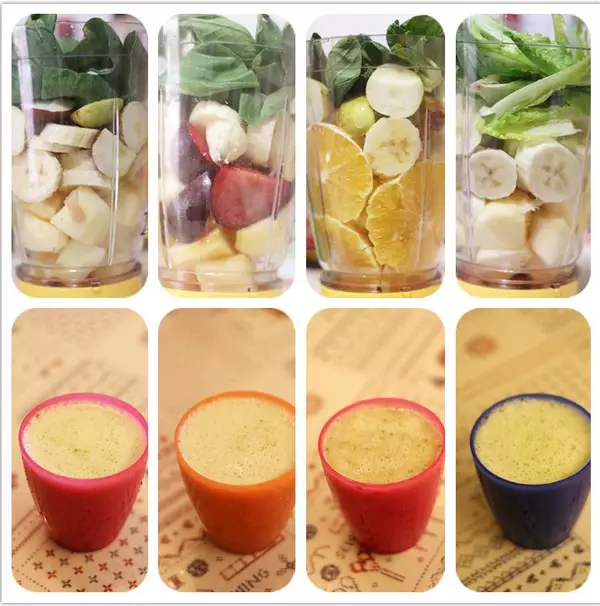 1.只放綠葉蔬菜和成熟水果。 2.不放根菜(如胡蘿卜)。含淀粉的蔬菜不宜與水果同食。 3.不放任何的鹽,油,糖,牛奶,豆奶,酸奶,果汁。粉末狀沖劑和營養(yǎng)補品也不可。 4.每次蔬菜水果的種類不要太多。簡單就好,更容易消化。 5.選用新鮮蔬菜和水果。水果以成熟狀態(tài)為最佳。 6.一天的量統(tǒng)一制作。剩下的可放冰箱冷藏。 7.制作好喝的GS是能夠堅持下去的關(guān)鍵。不要勉強放太多綠葉蔬菜。