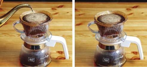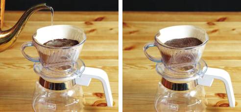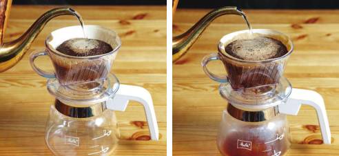 4. 剩下的萃取量用水來補充,不要使用手沖壺中剩下的水,直接加更熱的90℃水較好。簡單來說:淺烘焙咖啡磨得很細,其萃取速度也很慢,再加上烘焙過程中咖啡細胞組織還沒有充分膨脹而其細胞組織內(nèi)部幾乎沒有空隙,因此咖啡很難浮在水面而容易下沉,隨之妨礙咖啡萃取。就因為這樣,如果使用通常的萃取方式萃取出目標量,那么就因萃取速度慢而引起過度萃取,從而苦味、木質(zhì)味道等雜味變得強烈。為了抑制雜味,先萃取整體萃取量中體現(xiàn)最好味道的50%部分,剩余部分以水來補充。實驗二、把咖啡豆研磨的更細一些,可以增加咖啡粉的表面積,通過增加咖啡粉和水的接觸面積,使得同樣的時間里,水可以更快更多地溶解到想要的好物質(zhì)。