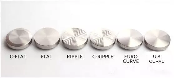 壓粉器的分類主要分為6類:1.C-Flat; 2.Flat; 3.Ripple;4.C-Ripple;5.Euro Curve;6.American Curve。主要區(qū)別在于粉錘的底部形狀1.Flat:最常見的壓粉器,底部為平底。2.Euro Curve:的粉錘底部是成圓弧狀的,最高處于粉錘邊緣的高度差在3.355MM。3.C-Flat:屬于Euro Curve和Flat的綜合,它不像Euro那樣的底部成弧狀,但是它卻想Euro那樣粉錘是有高度差的,底部是水平的平底,但是邊緣成弧狀,有高度差 。4.Ripple:比較難控制,粉錘底部是成波浪狀的。5.C-Ripple: 在Ripple的基礎(chǔ)上做了改進(jìn),粉錘的地步在邊緣部分做成了平底的,中心有多個(gè)凸起同心圓,壓出來(lái)的粉中心成波浪形,邊緣成水平。6.American Curve:相對(duì)于Euro Curve的底部弧度變小了,圓弧最高處與粉錘邊緣的高度差下降到了1.661MM 。
