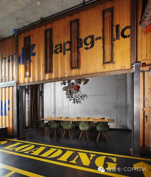 這兩年橫掃國內(nèi)咖啡館的工業(yè)風(fēng),我就不想解釋太多,或者有興趣的朋友可以告訴我,我日后安排這類的專題。無可否認(rèn),集裝箱是一個工業(yè)風(fēng)格的表現(xiàn)手段,既然我們無法整個用,那就取其神髓好了,下面幾張效果圖是我前段時間幫深圳某品牌做的設(shè)計,雖然著實(shí)的處理得比較過分簡練,但從思維上說,一切都從集裝箱的靈感而來。