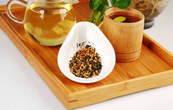 玄米茶是一種日韓風(fēng)味綠茶飲品,它以糙米為原料,經(jīng)浸泡、蒸熟、滾炒等工藝制成,與日式煎茶拼配而成。外觀勻整,黃綠相間,湯色黃綠明亮,既保有茶葉的自然香氣,又增添了炒米的芳香,滋味鮮醇、適口,使茶葉中的苦澀大大降低,而且茶湯更香濃,不傷腸胃,深受年輕人士的歡迎。