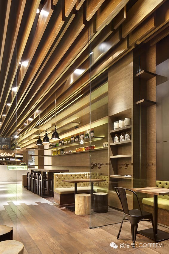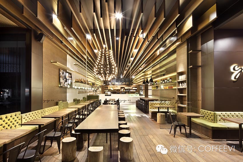 伴隨著中國(guó)不斷增長(zhǎng)的年輕富裕一代以及創(chuàng)意專業(yè)人士,休閑咖啡餐飲連鎖產(chǎn)業(yè)已經(jīng)人認(rèn)識(shí)到了這些客戶的需求并且以極快的速度在每個(gè)街邊路角不斷涌現(xiàn)。在這個(gè)高度競(jìng)爭(zhēng)的行業(yè)中,gaga鮮語(yǔ)代表的正是年輕,新鮮,現(xiàn)代以及時(shí)尚前沿的品牌形象,將其與眾多其他品牌真正的區(qū)分開來(lái)。在深圳的gaga鮮語(yǔ)創(chuàng)造一個(gè)新的店鋪設(shè)計(jì)時(shí),協(xié)調(diào)亞洲將那些幫助gaga成功的精華部分提取,并營(yíng)造出一個(gè)穿越室內(nèi)與室外的模糊邊界的獨(dú)一無(wú)二的空間概念。這個(gè)為gaga設(shè)計(jì)的新商鋪運(yùn)用了現(xiàn)有品牌的主題顏色。整體氛圍溫暖,自然舒適。實(shí)木材質(zhì),柔軟的針織材料河綠色的植物裝點(diǎn)都為整個(gè)空間營(yíng)造了一份平靜休閑的和諧環(huán)境。新的室內(nèi)設(shè)計(jì)的主要概念在于“穿越邊界”的概念,通過(guò)定制的天花板木飾板裝置來(lái)表現(xiàn),這些仿佛如同一縷縷陽(yáng)光從店內(nèi)破涌而出。木飾板沿著墻面延伸形成了商品的貨架。大型的吊燈通過(guò)乒乓球大小的燈泡裝點(diǎn),與幽暗的燈光和輕柔的爵士樂(lè)共同營(yíng)造出酒廊的氛圍。室外的木地板延伸進(jìn)入室內(nèi),逐漸轉(zhuǎn)化為流暢的水泥質(zhì)感地面。gaga的靈魂在于它所提供的食物。更注重商品的細(xì)節(jié),墻面上裝滿商品的貨架在店內(nèi)延伸,使顧客置身于gaga的飲食文化氛圍之中。在這里顧客能找到在gaga自己的廚房中所使用的各種最優(yōu)質(zhì)的食材和調(diào)料。這個(gè)特殊的產(chǎn)品概念“從我們的廚房到你的廚房”不僅推動(dòng)了gaga對(duì)于食物品質(zhì)的要求同時(shí)也使顧客感覺(jué)在gaga自己的食品儲(chǔ)藏室中隨意挑選。gaga對(duì)于品質(zhì)的關(guān)懷同樣可以在其他細(xì)節(jié)中得以觀察到;從彰顯個(gè)性的餐具到裝飾藝術(shù)品。沒(méi)有相類似的物件,每一項(xiàng)都經(jīng)過(guò)精心挑選。靈活的座位排布計(jì)劃使gaga能夠在保持家庭感舒適感的同時(shí)又能接待大客流。沿墻的沙發(fā)靠背椅一路從室內(nèi)延展到室外。位于餐廳中央位置的自由式座位可以以多種方式組合試用,來(lái)根據(jù)不同場(chǎng)合和聚會(huì)人數(shù)等情況作出調(diào)整。墻面貨架也可靈活多用;在繁忙時(shí)段,較低的貨架也可以被清理出來(lái)座位餐桌使用。立足于深入了解品牌本身,設(shè)計(jì)不僅著重表現(xiàn)并保留了gaga獨(dú)特的品牌形象。gaga的消費(fèi)者在新店中將會(huì)有賓至如歸的感受,同時(shí)驚嘆于gaga對(duì)于細(xì)節(jié)的關(guān)注和對(duì)于產(chǎn)品的盡心以及由協(xié)調(diào)亞洲所進(jìn)一步呈現(xiàn)的高品質(zhì)店鋪體驗(yàn)。