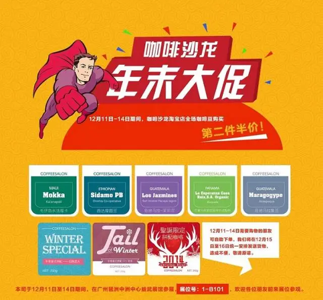 2014年最后一輪大優(yōu)惠:12月11-14日期間參展期不設(shè)客服,請自助購物咖啡沙龍?zhí)詫毜耆珗隹Х榷官徺I第二件半價!coffeeabc.taobao.com