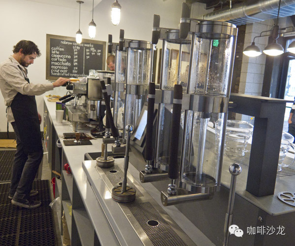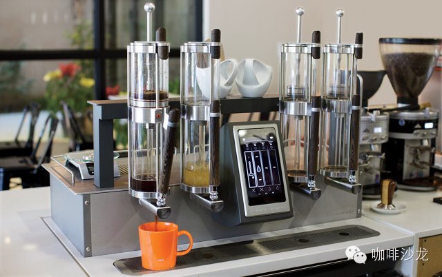 Steampunk 4.0的優(yōu)越性用Steampunk 4.0萃取咖啡最有趣的是過濾器的選取。Alpha Dominche 仿效從手沖到法壓等咖啡沖煮方式的過濾法設(shè)計(jì)了很多不同種類的過濾器,也就是說,咖啡師用Steampunk萃取咖啡時,可以根據(jù)不同客人的要求去選取可以萃取出不同風(fēng)味的過濾器去萃取咖啡。所以可以預(yù)先設(shè)置好每個獨(dú)立萃取裝置的過濾器,每個萃取裝置的過濾器都不一樣,這樣就可以同時萃取四種不同風(fēng)味的咖啡了,這對于一家生意好而且追求出品質(zhì)量的咖啡廳來說是一個不錯的選擇。制作咖啡時,咖啡師還可以控制很多參數(shù),例如:水溫、萃取時間、降溫時間、氣壓、攪拌和過濾器。萃取一杯咖啡的時間大概在兩分鐘。