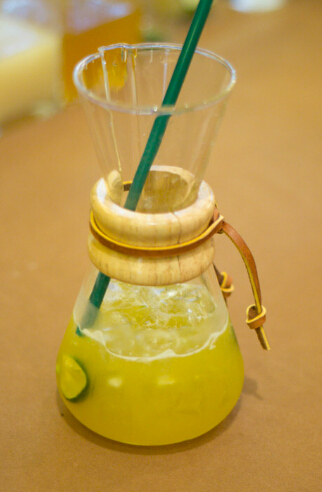 配方依舊很簡(jiǎn)單,和網(wǎng)絡(luò)比賽時(shí)沒有什么變化。將金桔檸檬演變成了金桔檸檬烏龍茶。這次為了突出此款作品的茶元素,趙亢亢用手工沖泡壺作展示器皿,很好的貼近了茶飲的主題。當(dāng)然能讓評(píng)委眼前一亮的還是飲品的味道以及亢亢對(duì)茶飲研發(fā)的感悟。