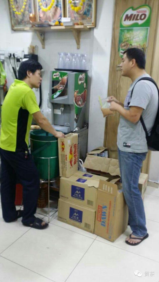 來到小印度走了一圈也沒看到有賣奶茶的,到是遠(yuǎn)遠(yuǎn)地看到有一個(gè)很多人排隊(duì)的地方,湊近一看!原來還真是賣奶茶的地方!因?yàn)樗业哪滩栉兜篮?,價(jià)格便宜,幾乎他周圍都沒有開奶茶店的,看來老外不跟咱們一樣哈(ni dong de)。