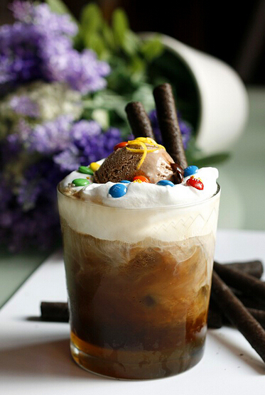 1、先在杯子里注入蜂蜜2、然后是融化的巧克力+蜂蜜膏3、冰塊+咖啡4、鮮奶油5、舀入一個(gè)冰激凌球6、灑上巧克力豆豆和幾條檸檬皮7、插上餅干條 可以了,嘻嘻