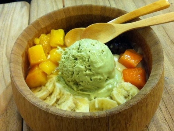 如何讓奶酪變成一道菜,答案就是組合。寶珠給奶酪組合取名為“奶酪菜菜”,寓意底料豐富。上面有紅豆、芋頭、新鮮水果,底層可以是奶酪和雙皮奶。冰淇淋里面也添加了酒釀,酸酸甜甜,有些許酒香,淡雅的感覺。