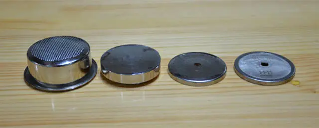 此圖,分水網(wǎng),粉碗都是平底的,那我們壓粉自然也要壓成平面的,這樣來自分水網(wǎng)平面的水來萃取咖啡粉,會(huì)以一個(gè)垂直恒定的壓力過咖啡粉,如果我們選用了弧底的壓粉器,這樣咖啡粉中間就會(huì)受力太大,分水網(wǎng)流下的平面的水就會(huì)因?yàn)槎栊员荛_中間難以通過的區(qū)域往四周流去?! ∠聢D為依次意大利IMS 22g弧底無痕粉碗,意大利La Marzocco原裝壓粉器弧面錘底,意大利IMS適配La Marzocco鐳射分水網(wǎng),意大利IMS適配La Marzocco超細(xì)分水網(wǎng)