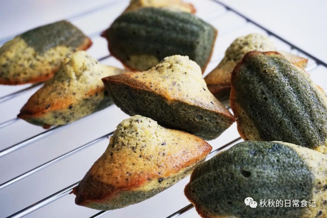 黑芝麻和艾草的結合讓人想到青團,但這個組合做成瑪德琳蛋糕是完全不一樣的質感和香氣,非常樸實無華,但是越嚼越香!那么特別的瑪德琳,真的不要試試看嘛?高興的話,可以把融化的白巧克力澆在瑪德琳上。這顏值,這獨一無二的口味組合,拿去送人倍兒有面子吧 (●ˇ?ˇ●)