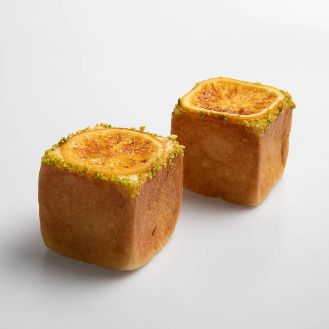 口味上通過魯邦種面團(tuán)激發(fā)了黃油與小麥香氣,柔軟有嚼勁;內(nèi)餡是細(xì)膩香甜的杏仁醬與奶油霜的組合,清爽不膩。最后舍棄了傳統(tǒng)臟臟包慣用的可可粉,改用天然果粉和堅(jiān)果打造令人滿足的視覺效果,也讓它吃起來更加健康有余味~Part 02“三重驚喜”——橙心物語除卻絲滑甜蜜的經(jīng)典奶油餡料,此次制作的夾心面包還往另一個(gè)方向進(jìn)行了拓展。內(nèi)夾蛋糕!是不是稱得上相當(dāng)別致啦~