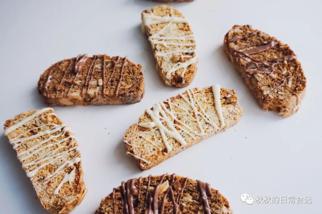- 配料**50克*巧克力味/咖啡味biscotti:將15-20克面粉替換成可可粉/速溶咖啡粉**配料舉例:杏仁、榛果、開心果、水果干(朗姆酒泡軟)、烘焙用巧克力豆……