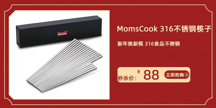 廚具上新復(fù)制口令:¥qV9a1bBuCEt¥r來來,這個板塊給大家特別安利其中3款新品:- 慕廚316不銹鋼筷子:采用的是比304更加耐用的316不銹鋼,市面上同等材質(zhì)做工的筷子要差不多200多元,這款可以說是送禮或者自用的性價比之選了: