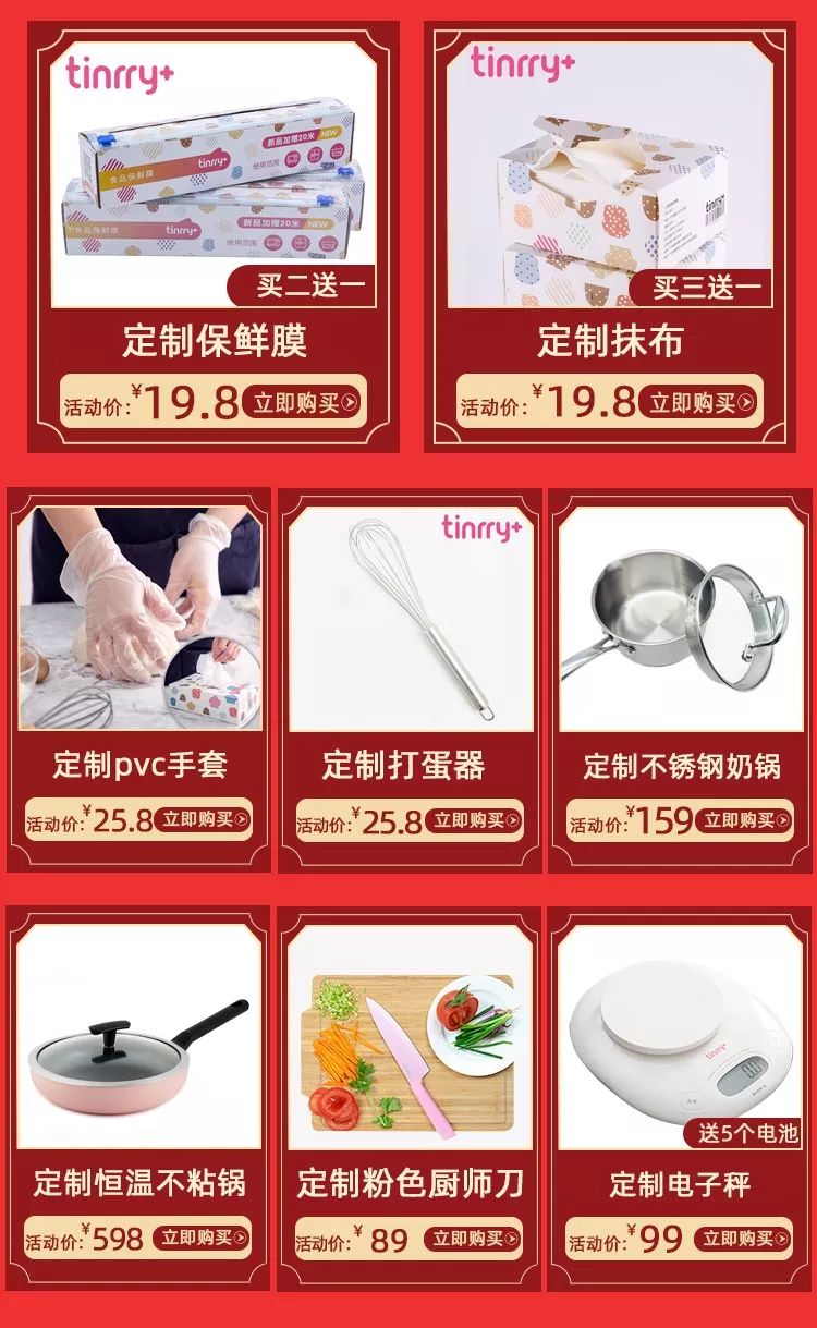 Tinrry+定制復(fù)制口令:¥qV9a1bBuCEt¥r年貨節(jié)期間,Tinrry+的定制款都有活動價??诒畋ur膜和一次性廚房抹布,分別有買二送一和買三送一的活動。而且咱們家的小號6寸打蛋器也重新補貨了,需要混合小碗東西的時候這個好使!