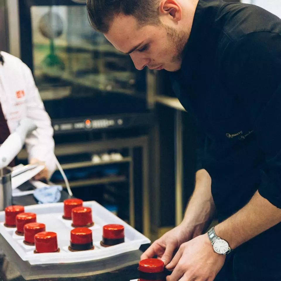 Amaury Guichon對色和香的把控絕對駕輕就熟到細微處見真章同樣是巧克力裝飾件他偏偏能用“變形”的手法重塑新的玩法“我喜歡選擇日??梢姷囊恍┦挛锇阉鼈冏龀商瘘c來欺騙眼睛比如一些從前沒做過的東西雞蛋、時鐘、羅盤……”其他的作品在造型、顏色、裝飾上他同樣能夠完全掌握最完美的平衡點只是簡單的糕點在他手里有了更多的可能說他鬼斧神工絕對是一點兒也沒錯了不多一分、不少一厘他用“復制粘貼”的手法做完了一款又一款的糕點對技術(shù)的鉆研他從來不會停歇如何把經(jīng)典進行創(chuàng)新他一直用自己的作品解答傳統(tǒng)的法式西點在他手里變得更加fashion、現(xiàn)代起來看完這些真的不得不個佩服他的大腦洞啊畢竟再跳脫的思想也需要有足夠的技術(shù)來支撐啊幸好,他就是這樣一個人▼2005年14歲的Amaury Guichon在法國薩瓦萊蒙洛桑酒店工作了兩年,按部就班的在工作中與烘焙打交道并不能滿足他對糕點的狂熱愛好。于是,他花了2年的時候回到瑞士完成了初級糕點課程的研修,并獲得了“巧克力showpiece精英學徒賽”第一名。發(fā)現(xiàn)自己在熱衷于巧克力制作并且頗具天賦以后,他在2009-2011入學法國雷諾特學校完成了巧克力領域的進修課程;在這兩年間,他獲得了“法國最佳學徒獎”金獎和全國青少年精英賽第二名。2011年他在戛納雷諾特店鋪開啟了人生第一次主管的角色,在那里他負責教授巧克力愛好者以及管理5位學徒;他同時贏得了頗負盛名的糕點大賽“Les Delices de la Mediteranee”冠軍。次年,他回到了巴黎擔任Hugo & Victor 3家店的行政主廚。2013年,他3次出現(xiàn)在歐洲首檔專業(yè)糕點電視綜藝節(jié)目中;在此期間,他移居摩納哥開始擔任費爾蒙酒店首席糕點主廚。之后,他開始擔任Yvan Chevalier的教練,為他參加世界巧克力大師賽提供幫助。2014年他開始了自己在美國的職業(yè)生涯,擔任位于拉斯維加的Jean Philippe Patisserie助理經(jīng)理。一年后,他被破格晉升為助理行政糕點廚師。2017年,他決定再次結(jié)束職業(yè)生涯,到世界各地教授大師班課程傳播技藝現(xiàn)在,他成了粉絲超百萬的、社交平臺上最受歡迎的糕點廚師。2018年,27歲的他腳步丈量了世界上的很多國家27歲的他也用高超的糕點制作技術(shù)為自己鋪設了一條光鮮的路向來成功都不是一件容易的事情尤其是對于當下的年輕人來說但是Amaury Guichon卻不滿于眼前的成績他用青春在自己的烘焙旅途上描繪了一筆筆精彩的印記這或許才是圈粉1000000的明星糕點師最迷人的模樣吧月 度 好 文