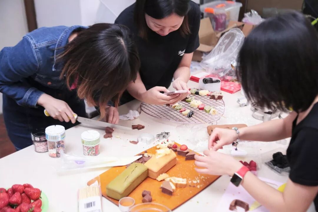 吃串串不稀奇但是把蛋糕水果做成串串那可就不一般了吧~大阪去年開的PANBO串串店靠著可愛繽紛概念新穎的蛋糕水果串一開業(yè)就變成網(wǎng)紅美食現(xiàn)在咱們不必買機(jī)票出國在家就能復(fù)刻美味今天這個(gè)版本不僅不加泡打粉而且超級適合跟寶寶一起動手組裝享受溫馨的家庭親子時(shí)光哦?。。?img data-backh="95" data-backw="551" data-copyright="0" data-ratio="0.1724137931034483" src="https://mmbiz.qpic.cn/mmbiz_png/h6KVEb0JzKrqwkRiawBfzxel42KWiacLwKaV9TriaCbicL0QTp4RSgdM9QuCtn5ZibSQ4MlZCSWMpl9M2UIVTWp0eQQ/640?" data-type="gif" data-w="551" width="556px" />日系蛋糕水果串燒材料模具:18*18cm方形活底不粘烤盤1個(gè)、20*9cm磅蛋糕模具2個(gè)參考量:6~8串黃油蛋糕(原味、抹茶味):無鹽黃油 200g糖粉 140g雞蛋 4個(gè)低筋面粉 200g抹茶粉 6g熱水18g分蛋海綿(可可味):雞蛋 3個(gè)細(xì)砂糖50g蜂蜜 10g低筋面粉50g可可粉10g黃油16g牛奶24g裝飾:水果(草莓、香蕉、奇異果) 適量白巧克力(或黑巧克力、蜂蜜、煉乳) 適量裝飾糖珠、糖片 適量制作說明:為了防止口味單調(diào),我們做了2款不同質(zhì)地的蛋糕用來搭配,如果覺得做這么多太麻煩,也可以只選擇其中一款做。步驟制作磅蛋糕(原味、抹茶味):準(zhǔn)備工作:黃油室溫軟化至手指能輕易按出痕跡,烤箱上下火以170攝氏度預(yù)熱。①將熱水倒入抹茶粉中,用茶筅打成抹茶醬備用。②將軟化完全的黃油用廚師機(jī)或電動打蛋器充分打發(fā)至發(fā)白膨脹,呈柔軟的奶油霜狀。③將面粉倒入黃油中攪拌至看不見干粉。④將雞蛋、糖粉、蜂蜜攪勻后,坐熱水加熱至大約38攝氏度,用打蛋器充分打發(fā)至顏色發(fā)白、體積膨脹。TIP:蜂蜜可以說是天然的轉(zhuǎn)化糖漿,加入蛋糕中能增加保水度、柔軟度,而且能增添天然的風(fēng)味和香氣~⑤將雞蛋糊分次倒入黃油中,攪拌均勻。⑥將面糊均分成2份,其中1份加入抹茶醬拌勻。⑦將2份面糊分別倒入磅蛋糕模具,接著倒入模具中,以170度,烘焙40分鐘。⑧蛋糕從烤箱取出后,在還有溫度的時(shí)候用保鮮膜包起保濕,放入冰箱冷藏晾涼備用。TIP:為了組裝時(shí)避免碎裂以及切面出現(xiàn)大孔洞,今天制作蛋糕采用了“粉油法”哦~ 先將面粉與打發(fā)的黃油混合,再加入蛋和糖混勻,這樣做出的成品組織會比糖油一同混合打發(fā)的做法要細(xì)致~制作分蛋海綿(可可味):準(zhǔn)備工作:烤箱上下火以160攝氏度預(yù)熱,將牛奶與黃油用奶鍋或微波加熱至微溫。①分蛋后,將蛋黃加入蜂蜜,坐熱水加熱至大約38攝氏度,用電動打蛋器打發(fā)至發(fā)白膨脹。②將1/2蛋黃糊中加入牛奶蛋黃液中拌勻,再倒回蛋黃糊中攪拌均勻。③將蛋白加入細(xì)砂糖,用電動打蛋器打至9分發(fā),蛋白霜有光澤,提起打蛋器尖角介于軟性與硬性之間。④將1/3蛋白霜加入蛋黃糊中攪拌均勻,再倒回蛋白霜中翻拌均勻。⑤將面粉與可可粉過篩加入,刮刀翻拌至看不見干粉。⑥倒入模具用160度烤30分鐘,插入牙簽無面糊黏連即可取出。組裝&裝飾:①將草莓洗凈,奇異果、香蕉切成塊狀。②將白巧隔水或微波融化,裝進(jìn)裱花袋中,前端剪小口備用。(如果白巧變硬,再次隔水或微波讓白巧回軟就可以了)③用餅干切?;驈N刀切出合適的蛋糕形狀,跟不同顏色的水果一起搭配著串在竹簽上。TIP:蛋糕與水果的形狀搭配很自由,用餅干模切造型,或用刀切成方塊、三角等幾何形狀都可以的哦~~盡情發(fā)揮創(chuàng)造力吧!④將白巧擠在蛋糕水果串串上,可以視喜好加上糖珠或糖片,做出繽紛可愛的質(zhì)感~保存方法:黃油蛋糕密封冷藏可存放5-7天,海綿蛋糕密封冷藏可存放約3天(用不完的還可以做成盒子蛋糕)。組裝后的串兒因?yàn)閮?nèi)含水果,建議當(dāng)天吃完,不然水果就要出水啦~沒想到普通的蛋糕還能這樣玩把色彩斑斕的水果和蛋糕排排串可愛度瞬間飆升一百倍結(jié)合兩種不同質(zhì)感的蛋糕黃油蛋糕香濃、海綿蛋糕松軟搭配清爽水潤的各種水果再隨意撒上家里現(xiàn)有的果醬、蜂蜜、堅(jiān)果碎可以當(dāng)成早餐也能帶上跟小伙伴一起去野餐哦~而且而且這款甜品特別適合跟孩子or朋友一起玩兒▼▼▼瞧瞧~~材料準(zhǔn)備好,小盆友就馬上被吸引過來了這款甜品好像能激發(fā)人類天生的創(chuàng)造欲望辦公室的孩子們見了今天的工作桌就紛紛自動圍上來了(平時(shí)只有喊吃東西的時(shí)候才有反應(yīng))看著這群玩得樂不思蜀的寶寶我默默舉起相機(jī)記錄下這難得的一刻(感動得突然母性爆發(fā)?。┄嫧嫧嬣k公室最小的小盆友做的小貓?(還是皮卡丘......)相當(dāng)費(fèi)心思地用糖粒做了五官,還做了小手手跟紅帽子這里切一個(gè)草莓小帽子、那里刻一個(gè)小動物一下午玩得不亦樂乎~~就是這么歡樂!講真~或許這不是我們做過最美的甜品但絕對是最有愛的甜品??!假日也準(zhǔn)備著跟寶寶動手做起來呀~~甜品制作&圖文編輯:梅梅攝影:梅梅&CONY看完教學(xué),接下來干啥?如果大家跟著我們的配方勤奮地親手制作了美美的成品歡迎交作業(yè)跟我們分享喲~(交了作業(yè)以后,記得每周一、三、四、六來看文章呀~ 獎品逾期不候哦?。╅L按識別下圖二維碼交作業(yè)▼ ▼ ▼幸運(yùn)入選的優(yōu)秀作業(yè)我們會送出超實(shí)用獎品學(xué)廚小奶鍋歡迎大家踴躍交作業(yè)喲~~