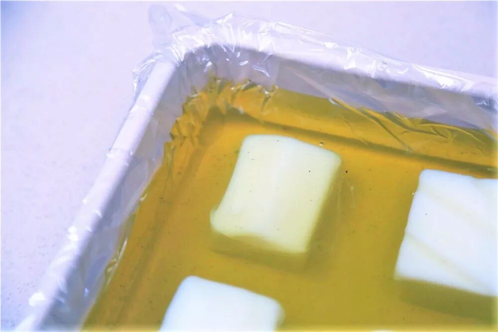 春天好像才過了一半這幾天突然一下子就熱得像夏天坐在房里幾乎能逼出汗不如做點涼快的、清爽的飄著花香的點心美美地度過這個周末~就算沒有我們用的模具用兩個便當盒也能做出來超方便噠!椰汁桂花糕材料模具:20*9cm磅蛋糕模具、18*18正方形模具參考量:4個白色椰汁凍:椰奶(或椰漿)145g牛奶110g常溫開水72g細砂糖36g吉利丁片3片(15g)透明桂花凍:干桂花8g熱開水(泡桂花用)560ml冰糖125g常溫開水適量吉利丁片7片(35g)裝飾:干桂花適量步驟準備工作:兩份吉利丁片分別放在兩個碗里,加入冰水軟化備用。制作白色椰汁凍:①椰奶、牛奶、常溫開水混合加糖,攪勻。②中火加熱至微微冒出熱氣。③加入擠干水分的吉利丁片,緩慢攪勻。④再次冒熱氣后離火。⑤隔冰水冷卻十分鐘后,椰奶溶液過篩。⑥然后倒入磅蛋糕長方形模具(模具內(nèi)里墊上保鮮膜),冷藏3小時左右。⑦取出脫模后修掉邊角料,切成4個正方形小塊。⑧活底正方形模具需要在內(nèi)里墊上保鮮膜,再壓上模具底片(否則液體會漏出來)。⑨把這4塊等距離放在18*18cm方形模具中,放冰箱保存?zhèn)溆谩?img data-copyright="0" data-ratio="0.666" data-s="300,640" src="https://mmbiz.qpic.cn/mmbiz_jpg/OXiaYrKsaf0KZMOaMSvv4VJdmGDWRb3d9hKHkgzMvNPEZst0icqIV1aV3baiclxJEr8mdQyk9lav7PFtI2Qu2jU9A/640" data-type="jpeg" data-w="1000" />制作透明桂花凍:①開水泡好干桂花,燜20分鐘。②燜好后用粉篩過濾掉桂花碎。③加入冰糖,小火煮至冰糖完全融化,離火。④吉利丁片擠干水分放入其中攪至融化,過濾一次。⑤加入適量常溫開水將桂花冰糖溶液補充至700g。⑥然后隔冰水降溫至20度以下。⑦倒入排好椰奶塊的模具中,冷藏3小時以上,取出切成四塊即可。保存方法:密封冷藏可存放3-4天。滿心期待捧出凍好的桂花糕透明層次單從視覺上就給人一股清涼感受方方正正的端莊模樣莫名透出高級感勺子輕輕碰一下桂花糕就在盤里輕輕地晃悠晃悠簡直精致可愛地讓人下不去口~嘖嘖贊嘆賞玩半天總算甘愿kuai一勺嘗嘗牙齒才咬破外層桂花凍香氣就先漫上鼻尖冰糖桂花的氣息包裹著香甜椰汁凍仿佛秋日與夏夜機緣湊巧的一次偶然邂逅看似沖突的一對味覺上卻意外地融合無間入口冰涼的凝凍甜度調(diào)和得恰恰好通過食道的時候溫潤地像玉有一種身心被滋養(yǎng)的慰藉感在熱得讓人漸漸浮躁起來的天氣里吃上一塊讓人想輕輕說一句“啊......真好”圖文編輯:梅梅甜品制作&攝影:CONY看完教學(xué),接下來干啥?如果大家跟著我們的配方勤奮地親手制作了美美的成品歡迎交作業(yè)跟我們分享喲~長按識別下圖二維碼交作業(yè)▼ ▼ ▼幸運入選的優(yōu)秀作業(yè)小編會給泥萌發(fā)送神秘小禮物格外出彩的小伙伴,還有機會受邀參與我們超級主廚欄目哦~~快來跟我們一起在烘焙的世界開心玩耍吧~么么么么噠!(比心)