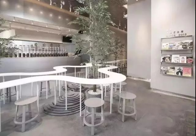 在今年近日開(kāi)業(yè)的深業(yè)上城店,喜茶更以中國(guó)古代文化中“曲水流觴”的概念引入到空間設(shè)計(jì)中,將古人在山溪之間飲茶、吟詩(shī)、作畫(huà)的畫(huà)面,用現(xiàn)代言語(yǔ)進(jìn)行詮釋。