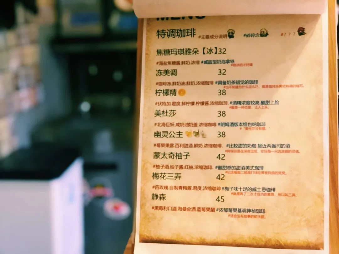 店里的菜單上,產(chǎn)品旁邊都寫著備注,“紀念每周二吼我打球經(jīng)常被我鴿的死黨”、“阿琛總在深夜出現(xiàn),安撫每一只流浪貓的靈魂”...老板還問我有沒有什么飲品想法,他可以在菜單上弄個“一喝咖啡誤終身”最愛的咖啡。一家小店的老板,從IT行業(yè)改行,因為喜歡,就去學了咖啡、西餐、面包,飲品用來裝飾的葉子日常是什么用途都跟你講得明明白白。每天早上九點做面包,十二點收工吃飯,三點來開店。