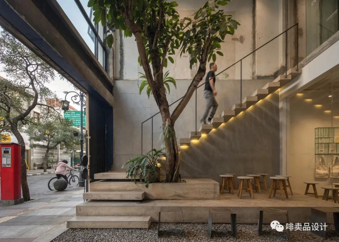 Via:Oi Architect設(shè)計師試圖給附近的其他商店帶來完全不同的印象,這些商店美化了觀光區(qū),這里更是一個現(xiàn)代化的咖啡店??Х葟d