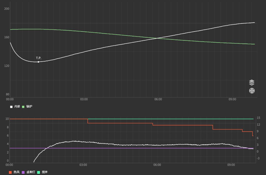 Espresso、牛奶咖啡、創(chuàng)意咖啡(哥倫比亞 天堂莊園 波旁)粉值:73一爆:8m13s 173度結束:9m53s 180度烘焙要點:這款咖啡在測試的時候容易出現苦味烘焙的時候用了更小的鹵素燈和升溫速率