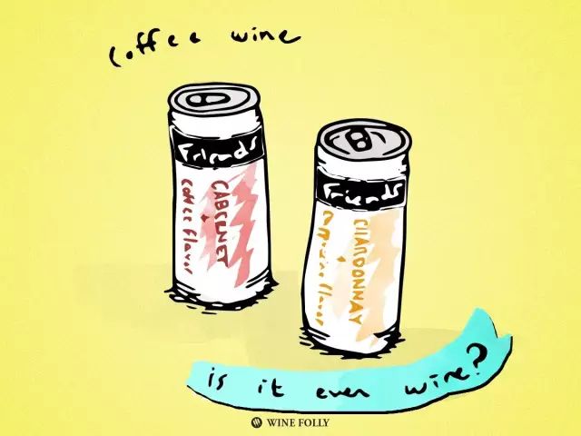 美國Friends Fun Wine Company是第一家將咖啡口味的葡萄酒推入市場的公司。 該系列共有兩款產品:意式濃縮咖啡赤霞珠葡萄酒,意式濃縮咖啡霞多麗葡萄酒。與一般葡萄酒不同,這兩款飲料并不是裝在酒瓶中,而是裝進了2倍大的、類似可樂瓶的罐子里。兩款飲料均含有6%的酒精度,并且不含任何咖啡因。