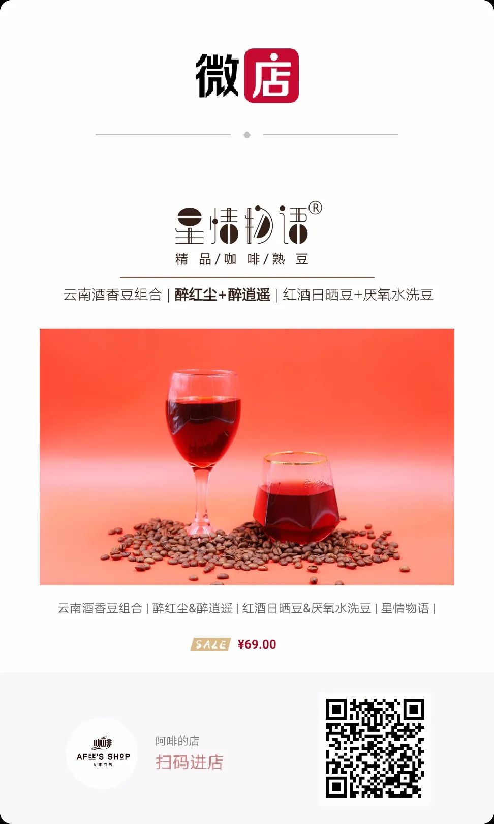 上周我們給大家?guī)淼倪@個(gè)云南酒香豆組合:醉紅塵&醉逍遙分別采用了當(dāng)前流行的特殊處理法厭氧紅酒日曬和果漬水洗處理至今已經(jīng)銷量超過300份大家喝完被驚艷到了粉絲交流群里不斷收到大家的熱愛之詞迷人的酒香和持久的甜感完全顛覆了大家對(duì)云南咖啡的印象歡迎喝過的繼續(xù)入手也恭請(qǐng)沒喝過這兩只豆子的伙伴來見證下其“醉人魅力”特價(jià)組合(醉紅塵100g+醉逍遙100g)69元全國(guó)包郵請(qǐng)長(zhǎng)按下圖識(shí)別二維碼妥妥帶走