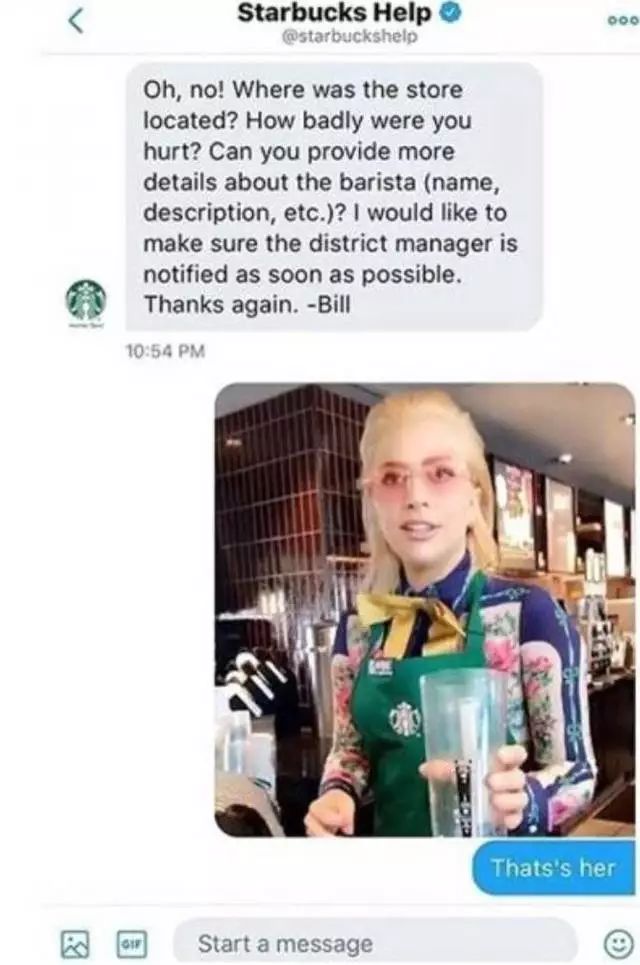每日精品咖啡文化雜志咖啡行業(yè)交流請(qǐng)加飲品界前街精品咖啡,微信號(hào):(長(zhǎng)按復(fù)制)qianjiecoffee   美國(guó)洛杉磯的星巴克門(mén)店,出現(xiàn)了一位極為“囂張”的新員工,不僅把一頭金發(fā)梳得老高,還戴上粉紅色太陽(yáng)鏡為客人點(diǎn)餐,仔細(xì)一看,居然是明星店員Lady Gaga。    原來(lái)是gaga與星巴克合作,推出了4款只在美國(guó)限定口味的“慈善”飲料,收益的25%將會(huì)透過(guò)gaga的Born This Way基金會(huì)作為慈善用途。  全部是由 Lady Gaga 本人甄選出來(lái)的口味,包括「抹茶檸檬水」(Matcha Lemonade)、紫羅蘭特飲(Violet Drink)、漸變粉紅特飲(Ombré Pink Drink)以及粉紅特飲(Pink Drink)。    新店員gaga,因?yàn)閯偨佑|搖飲料、收銀,難免有些手足無(wú)措。但卻吸引了許多粉絲上門(mén),買(mǎi)咖啡還可以和偶像聊天,簡(jiǎn)直是賺到不行。圖片來(lái)源:lady gaga ins     不過(guò)最搞笑的是,有一位顧客向星巴克投訴,他表示:“我今天到星巴克消費(fèi),店員對(duì)我很粗魯,我覺(jué)得自己被冒犯了…” 星巴克客服很快就回復(fù):“哈啰,我想要進(jìn)一步了解你的經(jīng)歷,好讓我能夠記錄下來(lái)交付給相當(dāng)單位,可以起你告訴我多一點(diǎn)細(xì)節(jié)和所發(fā)生的門(mén)市嗎?謝謝?!?img data-s="300,640" data-type="jpeg" src="http://www.puruisaisi.cn/file/upload/202207/21/123020801.jpeg" data-copyright="0" style="width: 375px;height: 257px;" class="" data-ratio="0.684375" data-w="640" />     顧客說(shuō):“那個(gè)咖啡師叫我買(mǎi)她的專(zhuān)輯,當(dāng)我拒絕時(shí)她就把熱咖啡潑在我身上?!毙前涂嘶貜?fù):“天啊不!那間店是在哪里呢?你受了多重的傷?你是否可以給予我那位咖啡師更多的細(xì)節(jié),像是名字、外貌?我會(huì)確保這件事讓區(qū)域經(jīng)理知道。”   最后顧客就上傳了這張照片,寫(xiě)下:“就是她。”  這位花俏、一頭金發(fā)、戴著粉紅墨鏡,結(jié)果一看員工名牌,就是Gaga!哈哈哈,還是回去當(dāng)歌手吧??!   事后Lady Gaga也在個(gè)人社交平臺(tái)問(wèn)候粉絲們:"我當(dāng)咖啡師當(dāng)?shù)萌绾危浚?,親民的作風(fēng)更獲得粉絲們的贊賞。免責(zé)聲明:網(wǎng)站部分內(nèi)容如圖片、我們會(huì)尊重原作版權(quán)注明出處,但因數(shù)量龐大,會(huì)有個(gè)別圖文未來(lái)得及注明,請(qǐng)見(jiàn)諒。若原作者有任何爭(zhēng)議均可與網(wǎng)站聯(lián)系處理,一旦核實(shí)我們將立即糾正,由“飲品界網(wǎng)”整理編輯,轉(zhuǎn)載請(qǐng)注明,本文意在傳播咖啡文化,若侵權(quán)請(qǐng)告知?jiǎng)h除,謝謝~!