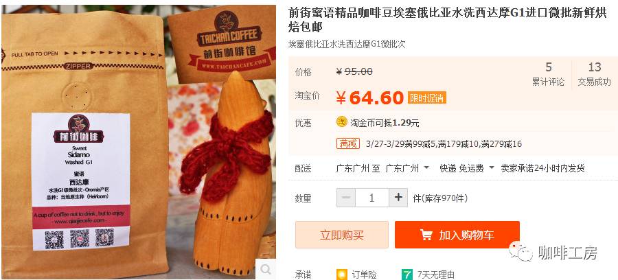 【蜜語】(水洗 輕度烘焙) 推薦理由:埃塞俄比亞水洗西達摩G1微批次 口感:野姜花、佛手柑、黑醋栗,多種熱帶水果豐富香氣,淘寶口令:https://item.taobao.com/item.htm?spm=a1z10.5006-c-s.newtejia.18.aW9oQy&id=539681992398